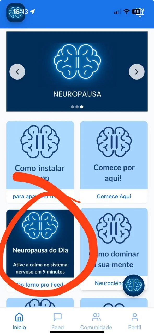 Você pode assistir as aulas diretamente do nosso aplicativo exclusivo assim como a Neuropausa do dia.